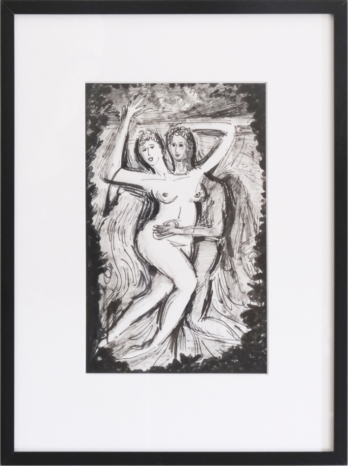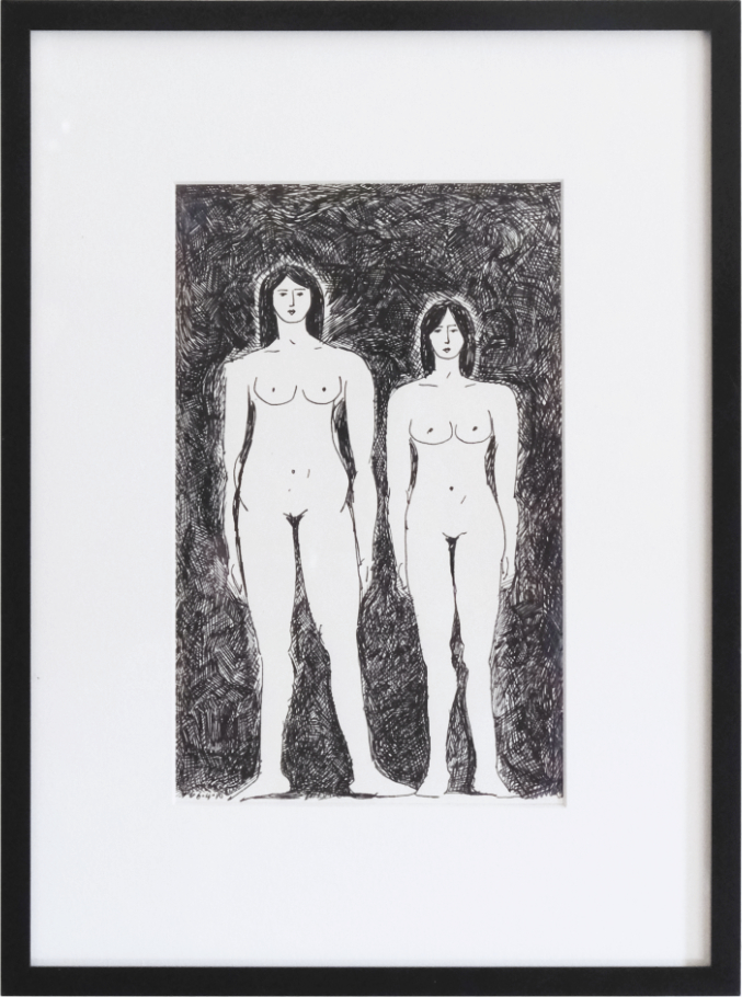 Two Natural Women, 2010, Pen & Ink on Paper, 13.5 x 10.25 in. Drawing 8.25 x 5.25 in.