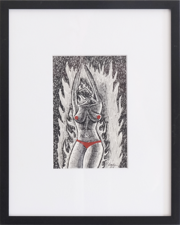 Dancing with Fire, 2013, Pen & Ink and Construction Paper on Paper, 10.25 x 8.25 in. Drawing 5 x 3.25 in.