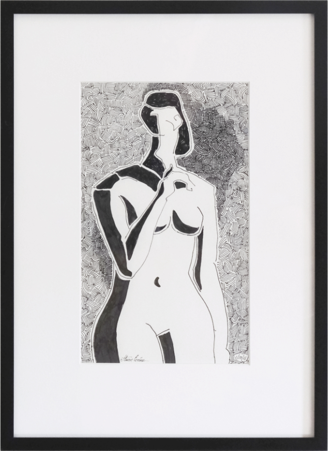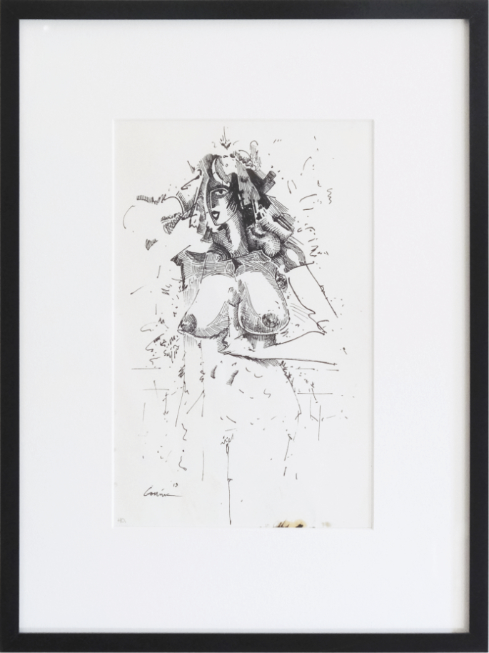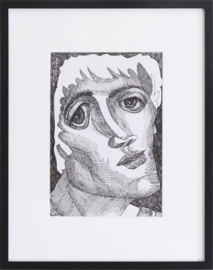 Woman in Despair, 2019, Pen & Ink on Paper, 11.75 x 10 in. Drawing 6.5 x 5 in.