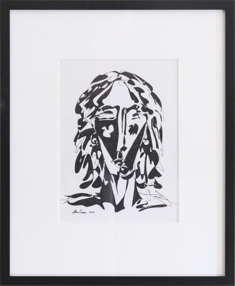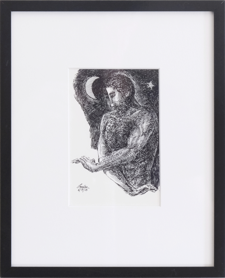 Greek God, 2010, Pen & Ink on Paper, 9 x 8 in. Drawing 4 x 3 in.
