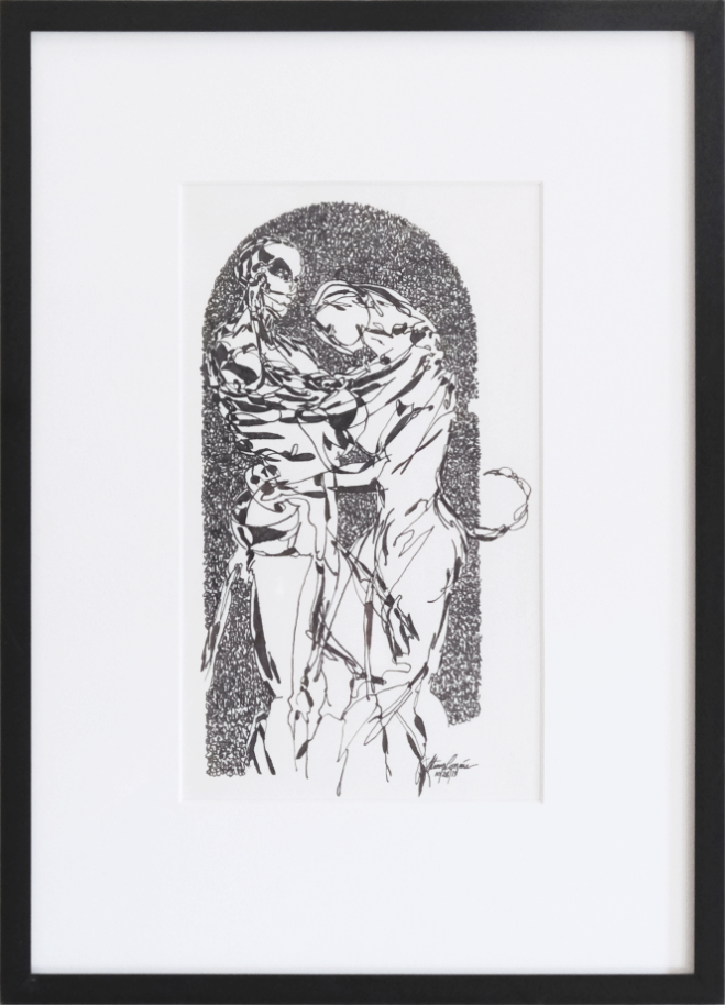 The Sword & The Scorpion, 2013, Pen & Ink on Paper, 13.5 x 9.5 in. Drawing 8 x 4.5 in.