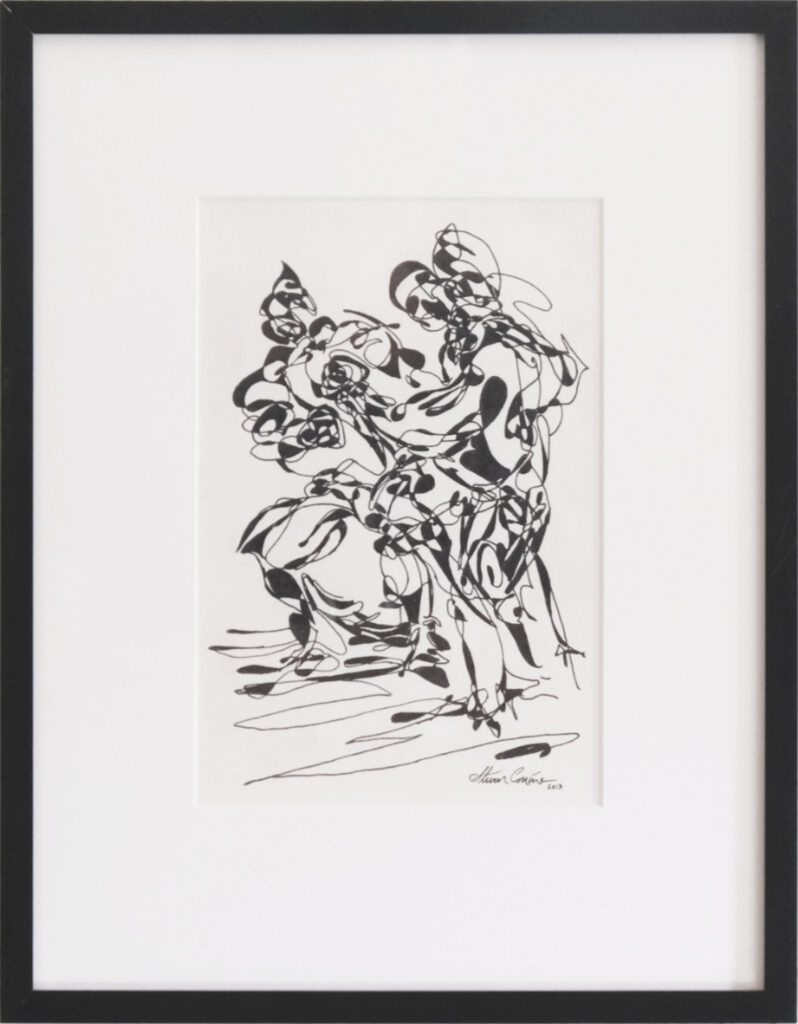 Carried Away by Love & Passion, 2013, Pen. Brush, and Ink on Paper, 13.5 x 10.5 in. Drawing 8.25 x 5.2 in.